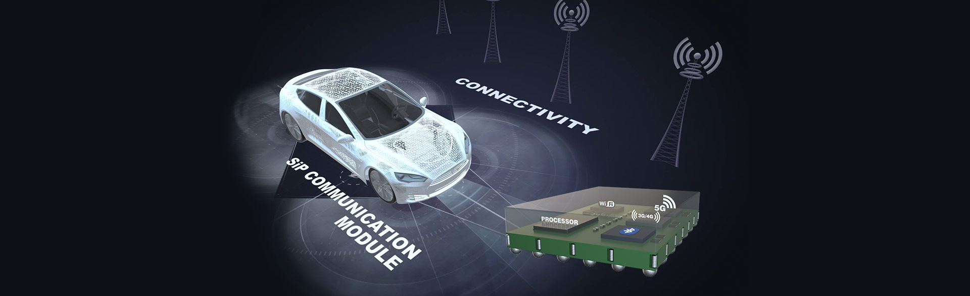 Auch außerhalb des Fahrzeugs wird die Automobilindustrie neue Anforderungen an die Elektronik stellen. Autonomes Fahren verlangt Car2X-Kommunikation, d.h. die Fahrzeuge müssen sich flexibel mit anderen Fahrzeugen und Diensten vernetzen können. Basis hierfür ist das im Aufbau befindliche 5G Datennetz. In den Fahrzeugen müssen dafür leistungsstarke, hochminiaturisierte Kommunikationsmodule verbaut werden.